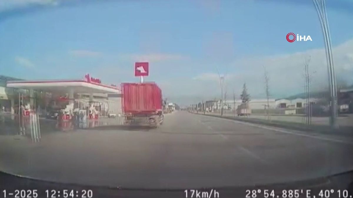 Bursa’nın Nilüfer ilçesinde ters şeritten son sürat ilerleyen bir kamyon, başka bir aracın araç kamerasına saniye saniye yakalandı.