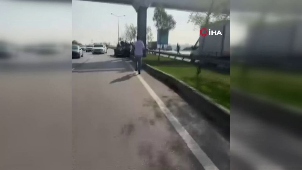 Bursa'nın Nilüfer ilçesinde, İzmir yolunda seyir halindeyken kontrolden çıkan otomobil, refüje çarpıp takla attı. Kazada otomobil ters dönerken bir tekeri yerinden koparak yola savruldu.