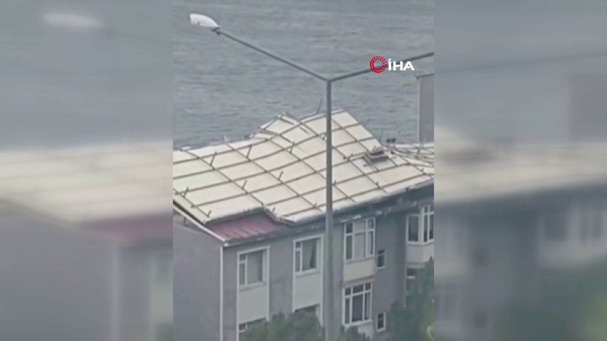 Bursa'nın Gemlik ilçesinde fırtına ve lodos sebebiyle apartmanların çatıları uçarken, ağaçlar ise devrildi.