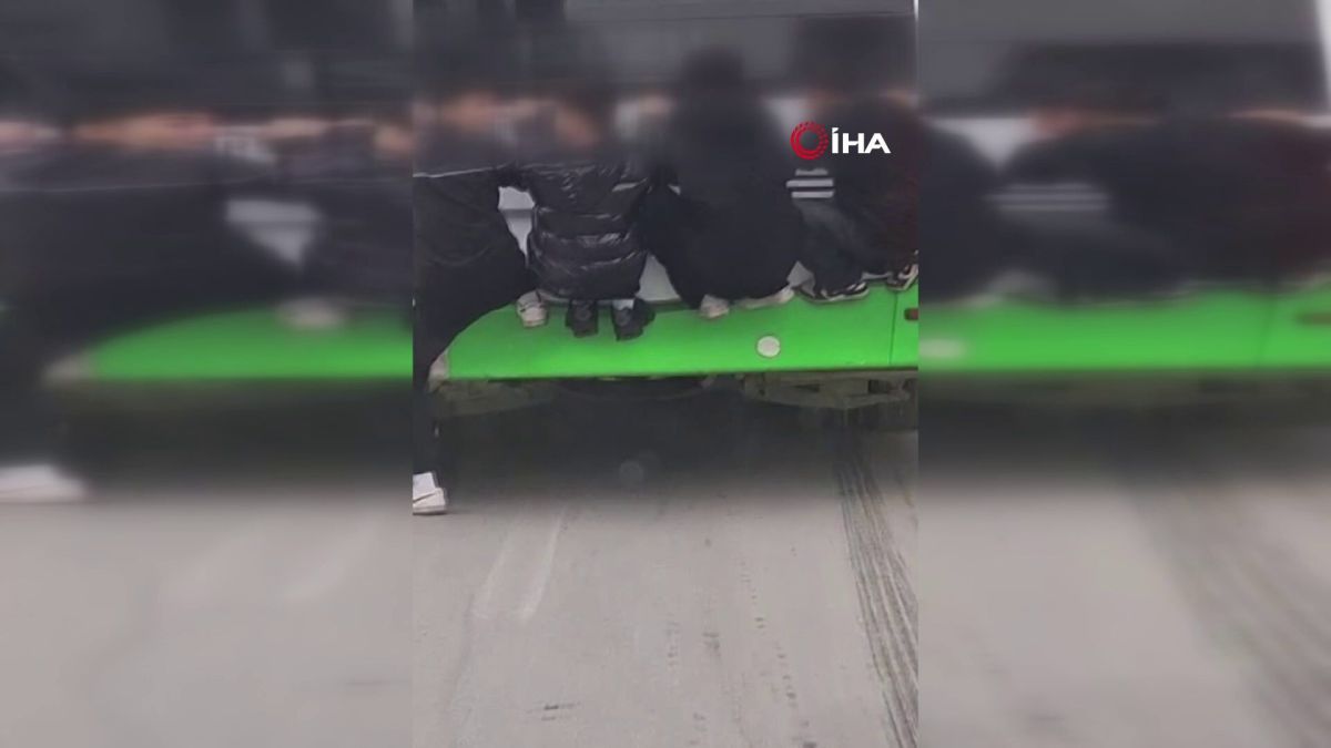Edinilen bilgiye göre, Millet Mahallesi'nde özel halk otobüsünün arkasına asılan öğrenciler, trafikte ilerleyen otobüsün arasında yolculuk yaptı. Otobüs şoförünün durumdan haberdar olmadığı öğrenilirken, öğrencilerin bu davranışı gören vatandaşlar büyük panik yaşadı.